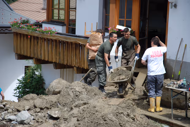 Doch allerorten ist im Sellraintal auch so etwas wie Optimismus und Aufbruchstimmung spürbar. In die Hände spucken. Aufräumen. Auch dank großer Hilfe von vielen Seiten. Seit gestern Früh werden rund 150 Bundesheersoldaten der 6. Jägerbrigade (hochgebirgsbeweglich) an allen neuralgischen Punkten im Dorf eingesetzt, um Unmengen an Schlamm und Geröll wegzuschaffen, Keller, Häuser und Ställe auszuräumen. Zusammen mit rund 250 Feuerwehrleuten – davon allein 160 aus dem Bezirk Schwaz – und freiwilligen Helfern aus der ganzen Region seien insgesamt um die 500 Leute im Einsatz, schätzt der Sellrainer Bürgermeister Norbert Jordan. Die Zusammenarbeit aller Helfer sei „vorbildlich“, der Einsatzwille „einmalig“. Das bestätigt auch Christoph Kapferer, Mitglied der FF Sellrain, dessen direkt an der Melach gelegenes Haus schwerste Schäden davongetragen hat. „Ich habe es – zum Glück – noch gar nicht richtig verarbeitet. Aber es nützt eh nichts, man kann es nur mit Humor und Optimismus nehmen.“ Die Solidarität und Hilfsbereitschaft sei jedenfalls überwältigend: „Mein Telefon hat sechs Stunden durchgeklingelt, weil so viele Bekannte und Freunde helfen wollen.“