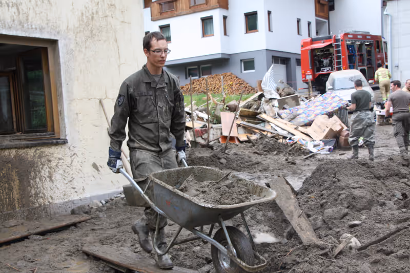 Hunderte Helfer schuften im Paznaun und im Sellraintal unermüdlich an der Beseitigung der Unwetterschäden. Viele Betroffene haben das Ausmaß noch nicht realisiert, sind aber dankbar für die Hilfe.