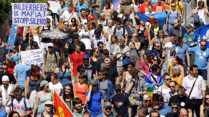 Auf großteils selbstgemalten Plakaten waren Slogans wie „Bilderberger - Nix wie Ärger“, „Klassenkampf statt Weltverschwörung“, „NWO - New World Orders - No thanks!“ und „Geld regiert die Welt - Wer regiert das Geld?“ zu lesen. An die zahlreich anwesende Polizei adressierten die Teilnehmer: „Polizei gehört auch zum Volk - Wir kämpfen für Euch!“. Am Protestzug nahmen auch Eltern mit ihren Kindern teil. Die lokale Bevölkerung verfolgte das Geschehen in beträchtlicher Zahl. Teilnehmende Politiker waren Mangelware. Gesichtet wurde lediglich der Landessprecher der Tiroler Grünen, Abg. Georg Willi.