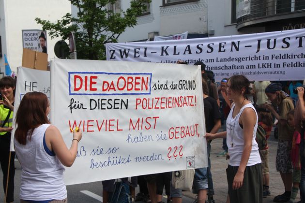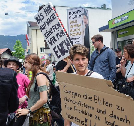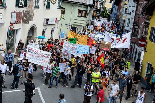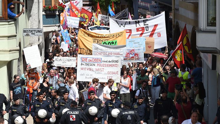 Zu der unter anderem von Attac, KPÖ, Grünen, Piraten sowie dem Friedensforum Innsbruck organisierten Kundgebung waren nach Angaben der Polizei 500, nach Angaben der Veranstalter 800 statt der angekündigten bis zu 3000 Teilnehmer gekommen. Nach einer Aufwärmphase mit musikalischen Protestbeiträgen und dem Skandieren verschiedener Botschaften setzte sich der Protestzug unter großem Polizeiaufgebot schließlich in Bewegung. Unter anderem kritisierten die Teilnehmer die angeblich mangelnde demokratische Legitimation der Konferenz.