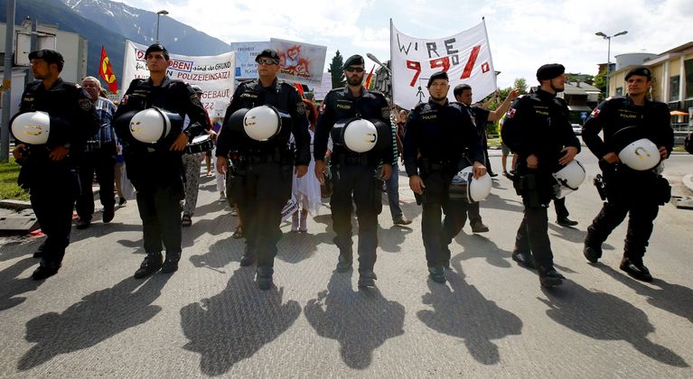Das Sicherheitsaufgebot für die Veranstaltung war enorm. Die Polizei hatte nach ihren Angaben bis zu 2.100 Beamte in Bereitschaft bzw. im Einsatz. 50 Kilometer rund um den Tagungsort wurde eine Flugbeschränkungszone verordnet. Über das Gebiet unmittelbar vor dem auf einem Hochplateau gelegenen Interalpen-Hotel wurde ein „Platzverbot“ verhängt. (APA)