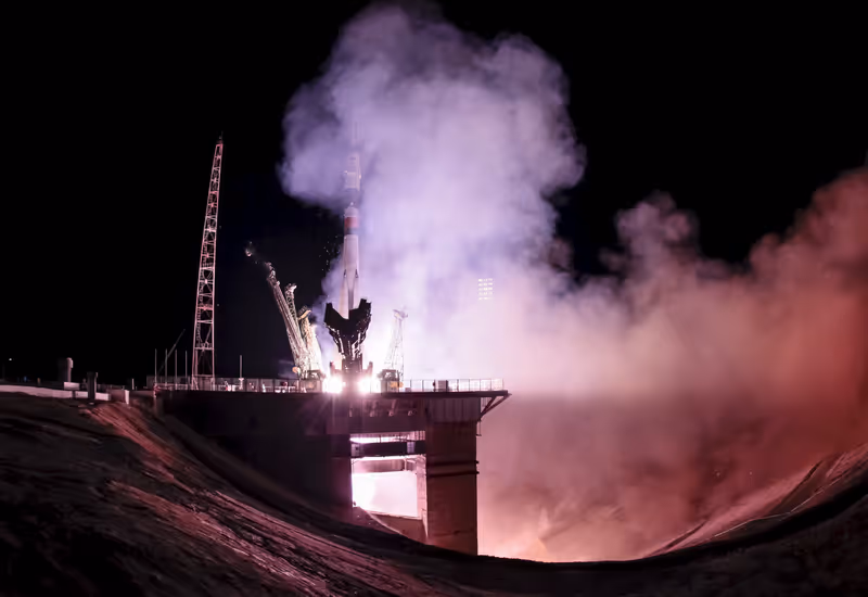 Die russische Sojus-Rakete war am Mittwochabend planmäßig um 23.02 Uhr MESZ vom russischen Weltraumbahnhof Baikonur in der kasachischen Steppe abgehoben. An Bord waren der russische Kosmonaut Oleg Kononenko, der US-Astronaut Kjell Lindgren und ihr Kollege Kimiya Yui aus Japan.