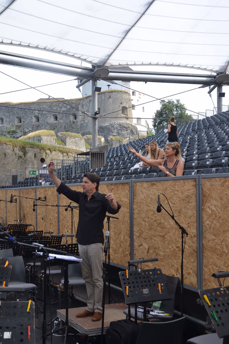 Kufstein –Klaviertöne schweben über die Josefburg der Festung Kufstein, gerufene Anweisungen genauso wie Gelächter und manchmal auch ein „Verflixt“ sind zu hören – es steht fest: Die Proben für den Operettensommer haben begonnen. „Gewissermaßen nehmen wir hier die Montagearbeiten vor“, scherzt Ernst Theis, der auch heuer wieder die musikalische Leitung inne hat. Seit längerem wird bereits geprobt, auf der großen Bühne werden jetzt die „Szenen zusammenmontiert“. Heuer geht es mit vielen Ideen und Schwung in der Inszenierung von Wolfgang Gratschmaier (Produktionsleitung: Diethmar Straßer) für die Zuschauer zum Wolfgangsee, genauer gesagt ins „Weiße Rössl“.