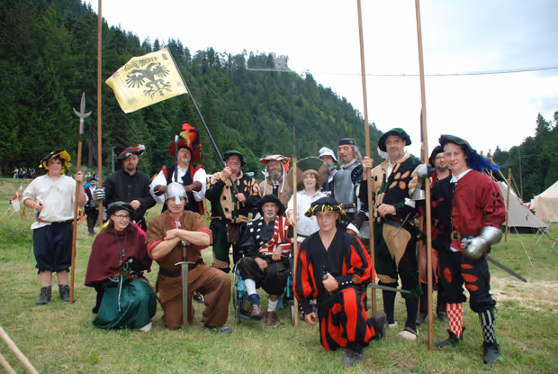 Unter den über 1000 mittelalterlich Gewandeten zeigten sich auch die heimischen Landsknechte zu Ehrenberg, die um 1600 in Reutte wirklich existierten. Die Truppe gründete sich vor zwölf Jahren zum Start der ersten Ritterspiele. Laut Hauptmann Werner Wex sind sie vor allem in der Region im Einsatz, doch auch in Frankreich und Deutschland sind sie in der Sommerzeit gefragt. Das Lagerleben ist für die 30-köpfige Truppe, der auch fünf Kinder angehören, ein einziger Freizeitspaß, der Abstand zum Berufsalltag ermöglicht.