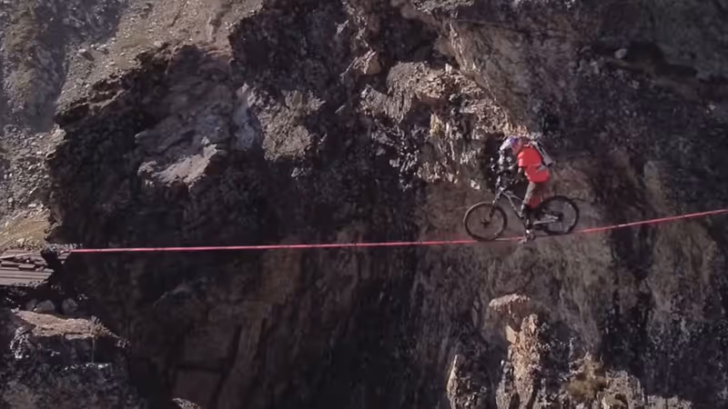 Nichts für schwache Nerven: Mit dem Bike über die Slackline