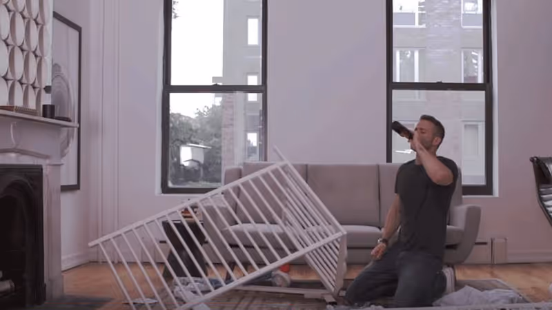 Außer einem langsamen Absturz in den Alkoholismus habe er Probleme, die einzelnen Schrauben - gefühlt mehr als 100.000 - zu finden. Ob denn nicht ein - oder fünf - Mitarbeiter kommen könnten und ihm das Bett zusammenbauen könnten? Dieser Wunsch wird ihm nicht erfüllt. Nach dem er aufgelegt hat, lässt Reynolds einen wenig schmeichelhaften Kraftausdruck folgen.