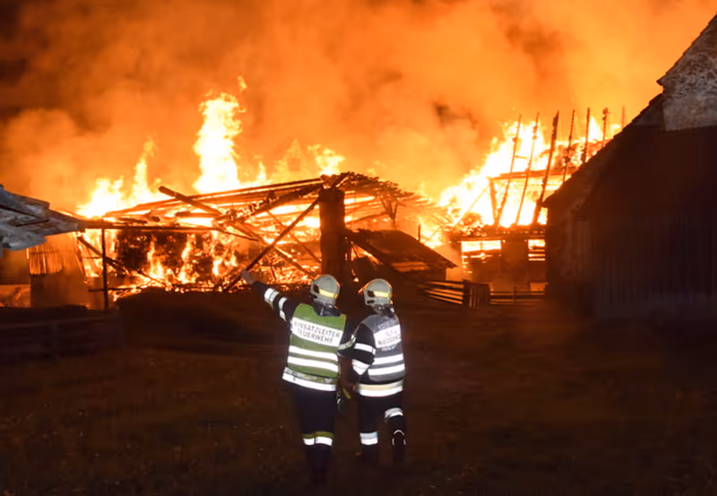 Nach fünf Stunden konnte die Feuerwehr in der Steiermark am Samstag einen Großbrand unter Kontrolle bringen. Die Flammen griffen von einem Stallgebäude auf einen Gasthof über. Verletzte gibt es keine.
