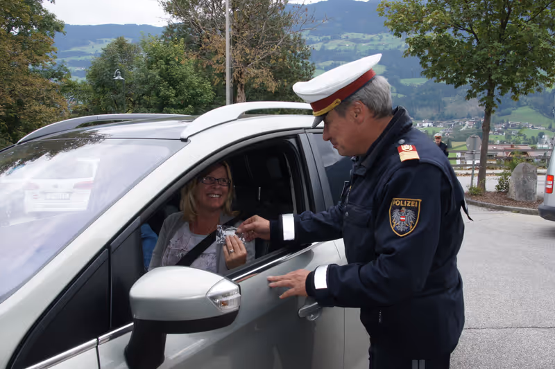 „Wir haben diese Aktion mit Schulbeginn gestartet und können bisher eine recht positive Zwischenbilanz ziehen. Vor allem sind Schulwegunfälle ausgeblieben. Auch heute waren hier in Fügen eher weniger Verkehrssünder dabei“, berichtete Oberstleutnant Günther Salzmann. Es wurden aber nicht nur Raser für ihre Geschwindigkeitsüberschreitung bestraft, sondern auch jene Verkehrsteilnehmer belohnt, die sich an die 30er-Zone im Schulgebiet gehalten haben. „Vorbildliches Verhalten honorieren wir mit einem Sicherheitsarmband“, betonte Salzmann freudig.
