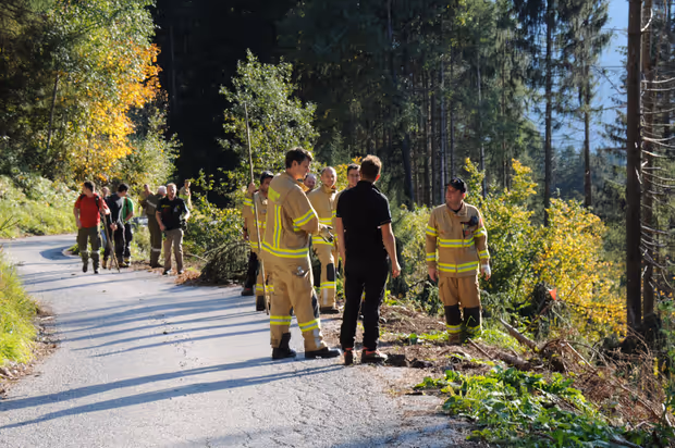 Nachdem die Suche auch am Freitag ergebnislos verlief, wurde sie Samstagfrüh wieder aufgenommen. Damit das unwegsame Gelände besser durchforstet werden konnte, bildeten die Einsatzkräfte Suchketten. Doch wieder fand sich keine Spur von dem 97-Jährigen.