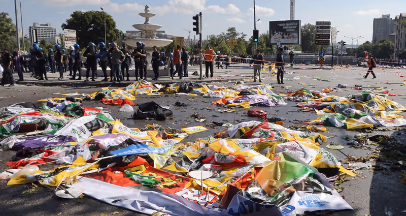 Ankara - Auf dem Platz vor dem Bahnhof der türkischen Hauptstadt Ankara bietet sich ein Bild des Grauens. Abgerissene Körperteile liegen auf der Straße, Fahnen und Transparente bedecken die Leichen von Menschen, die beim schlimmsten Anschlag der türkischen Geschichte getötet worden sind. Mutmaßliche Selbstmordattentäter haben mit ihren Sprengsätzen mindestens 95 Menschen mit in den Tod gerissen.