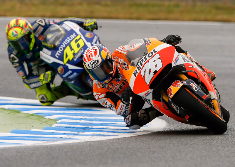 Pedrosa, zu Beginn bei schlechtem Wetter und schwierigen Streckenverhältnissen lange Zeit an vierter Stelle liegend, konnte das Duo in der zweiten Rennhälfte noch überholen und gewann mit einem doch deutlichem Vorsprung von über acht Sekunden. Für den bald 30-Jährigen war es der erste Erfolg seit August 2014, damals triumphierte er in Brünn. In der Königsklasse war es der 27. Sieg für den Katalanen.