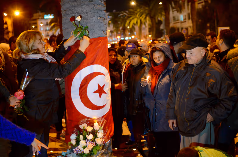 Tunesier trauern am Ort des Bombenanschlages vom 25. November. Die Gewalt stellt die junge Demokratie auf die Probe.