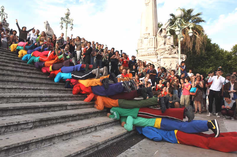 Menschliche Skulpturen im urbanen Raum - auch diese werden beim Straßentheaterfestival Ende Juli in Lienz zu erleben sein. Wer über die nötige Fitness verfügt, kann mit etwas Glück Teil der choreographierten Aktion werden.