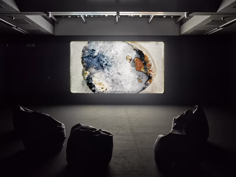 Im zweiten Raum finden die Besucher den Stapel einer Publikation, die mitgenommen werden kann. Darin sind sogenannte „Movements“ zu lesen, Anweisungen aus dem Bereich der Lichttechnik und der Kameraführung. Der dritte Raum wirft die Frage auf, inwiefern Tiere ein Verhältnis zu sich selbst oder gar reflexive Selbstkonzepte besitzen. Im vierten Raum treffen die Besucher schließlich auf ein Steinfeld, unter denen auch jene sieben aufgeschnittenen Geoden zu finden sind, die für die Filminstallation verwendet wurden. (APA)
