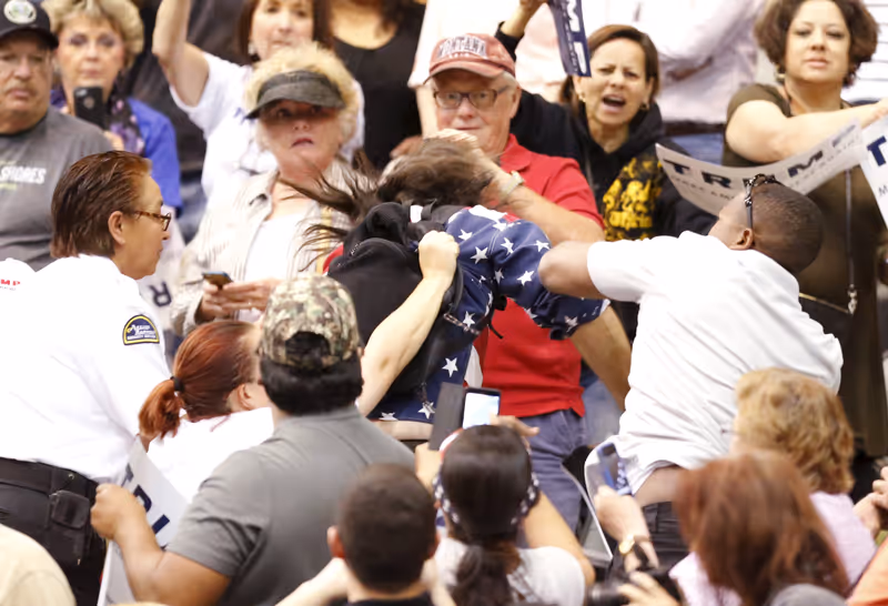 Ein Trump-Unterstützer schlug bei einem Wahlkampfauftritt in Tuscon (Arizona) auf einen Demonstranten ein.