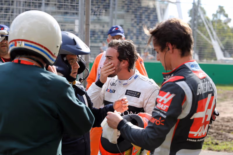 Es war in der 18. Runde, als Alonso im Albert Park beim Versuch, den Haas des Mexikaners Esteban Gutierrez auf der Geraden zu überholen, das linke Hinterrad des Vordermannes erwischte. Dadurch verlor der zweifache Weltmeister die Kontrolle über sein Gefährt. Nachdem er links an der Mauer eingeschlagen und sich in der Folge im Kiesbett mehrmals überschlagen hatte, segelte Alonsos Bolide gut hundert Meter weit fast ungebremst dahin. Danach zerschellte der McLaren an der Begrenzung der in Kurve drei glücklicher Weise sehr langen Auslaufzone endgültig.