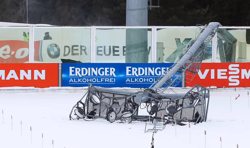 Starker Wind hatte einen Flutlichtmasten und Werbeplakate umgerissen, die Zuschauer mussten die Tribünen räumen. Laut Angaben des Weltverbandes (IBU) gab es keine Verletzten. Auf der Strecke sorgten herabstürzende Äste und umsturzbedrohte Bäume für Gefahr. Für Österreich hätten Lisa Hauser, die WM-Medaillengewinner Dominik Landertinger und Simon Eder sowie Sprint-Sensationssieger Julian Eberhard antreten sollen.