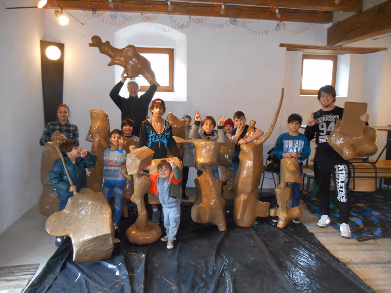 Mit Begeisterung und Fleiß gingen die Mädchen und Jungen an die Arbeit. Neben dem Malen und Basteln waren auch das gemeinsame Spielen und Feiern und die Begegnung mit Einheimischen für alle Beteiligten eine schöne Bereicherung. Auf den Sockeln der Skulpturen haben die jungen Künstler zu den Themen Familie, Heimatland sowie Freunde in Österreich gemalt und ihre Vorbilder oder auch Zukunftsträume dargestellt.