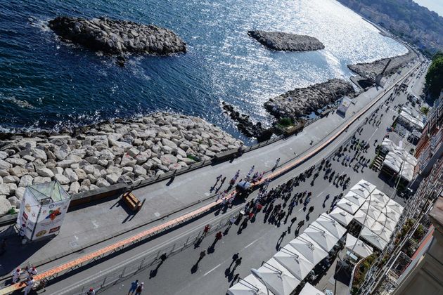 Pizza ist fertig! Und gleich 1,8 Kilometer davon. An einer Küstenpromenade in Neapel wurde die längste Pizza der Welt gebacken.