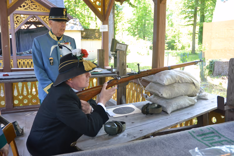 Geschossen wurde mit dem Sturmgewehr 77 (StG77) und der Originalwaffe der Tiroler Kaiserjäger, dem Gewehr Steyr M95. (wo)