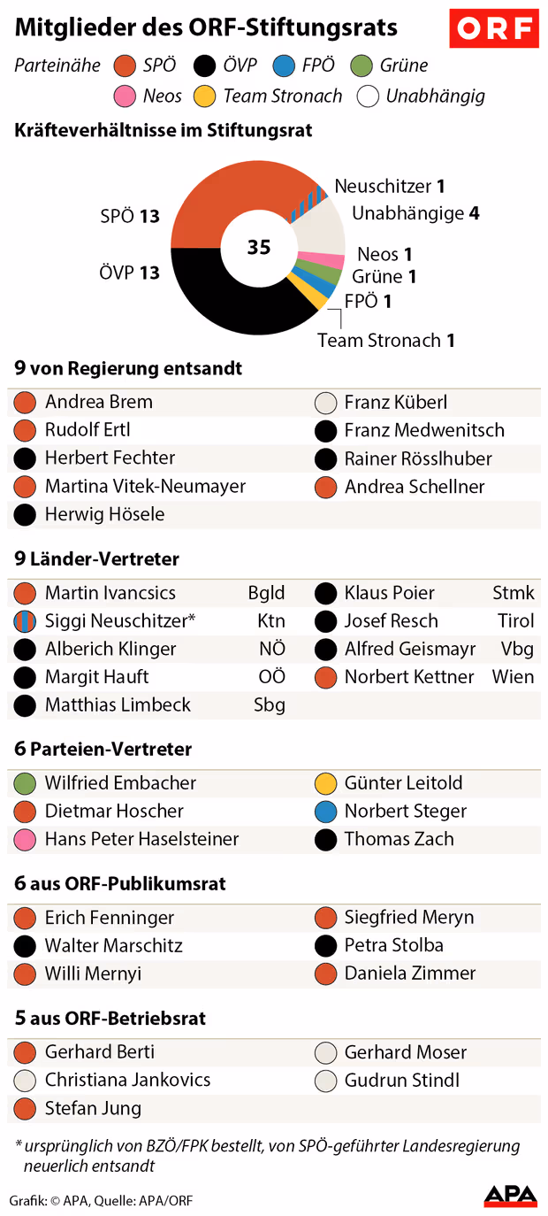 Die 35 Mitglieder des ORF-Stiftungsrats wählen den neuen Generaldirektor, der sein Amt am 1. Jänner 2017 antritt, am Dienstag in nicht geheimer Abstimmung. 18 Stimmen sind für eine Mehrheit notwendig. Die Mitglieder des ORF-Aufsichtsgremiums werden von Regierung, Parteien, Bundesländern, ORF-Publikumsrat und Betriebsrat beschickt und sind - abgesehen von wenigen Ausnahmen - in parteipolitischen „Freundeskreisen“ organisiert. Wegen der knappen Mehrheitsverhältnisse dürften die Vertreter der Opposition sowie die Unabhängigen den Ausschlag geben. Zuletzt wurden unter Stiftungsräten die Chancen des amtierenden ORF-Chefs etwas höher eingeschätzt. Wrabetz und Grasl warben bis zum Schluss für ihre Konzepte, und beide Bewerber rechneten auch mit einer Mehrheit. (APA)