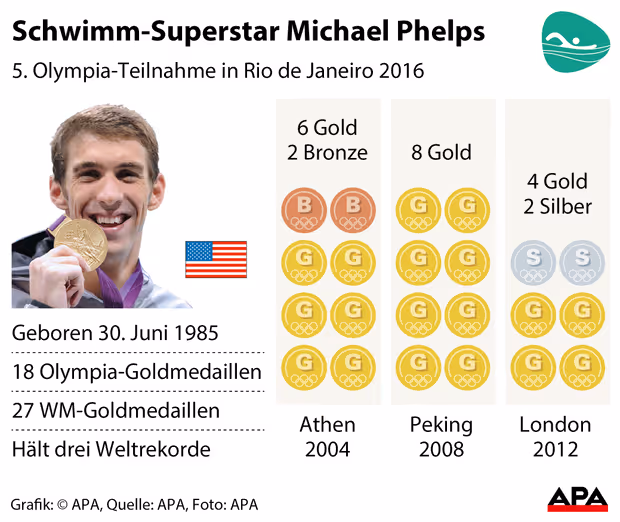 Hosszu wiederum hat sogar die Chance auf ein viertes Einzel-Gold. Die „Iron Lady“ tritt noch am Donnerstag über 200 m Rücken an. Phelps hat die Möglichkeit auf drei weitere Goldene. Er hat noch die Einzelstrecken über 200 m Lagen und 100 m Delfin vor sich, er könnte da jeweils als erster Schwimmer auf einer Distanz zum vierten Mal in Folge Olympia-Gold holen. Zudem sollte der erfolgreichste Olympionike der Geschichte für die Lagenstaffel gesetzt
