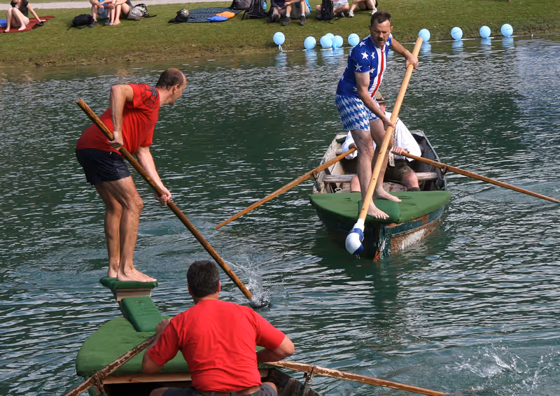 Gestartet wird ab 11 Uhr mit dem Kinderbewerb, bei dem alle bis 12 Jahre in Teams ihr Können auf den wackeligen Booten zeigen dürfen. Danach folgen Damen- und Herren-Wettbewerbe bis zum Finale um etwa 16 Uhr.
