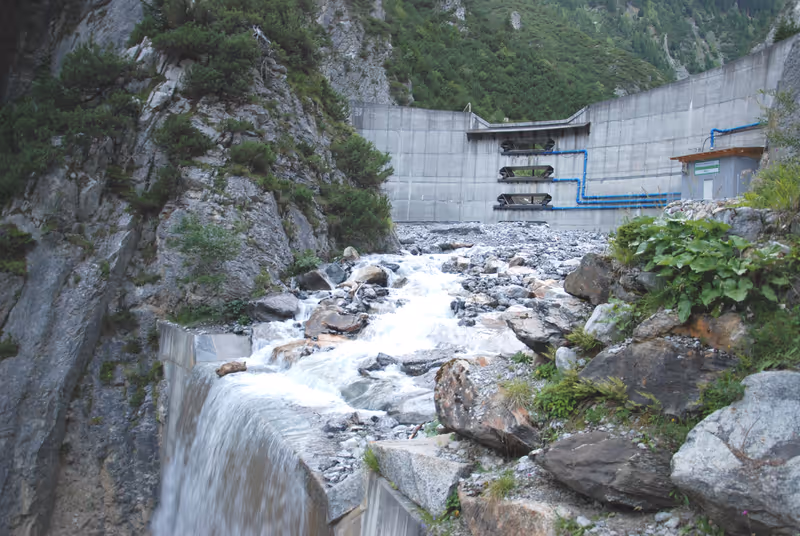 „Die Wildbach- und Lawinenverbauung hat ein innovatives Konzept entwickelt, das in den vergangenen beiden Jahren umgesetzt wurde“, erläuterte Gebietsbauleiter Gebhard Walter. Die Oberinntaler Wildbach-Truppe installierte einen so genannten mobilen Dolenverschluss an der großen Bogensperre samt Kameraüberwachung. Mit Hilfe von dicken Wasserschläuchen können die drei Dolen rasch geschlossen werden. Damit ist ein kontrollierter Geschiebeabfluss möglich.