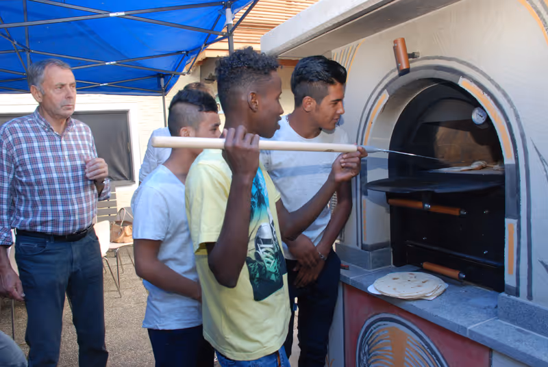 Am Tag der offenen Tür in Dölsach, zu dem die Hausbesitzerfamilie Miglar-Tschapeller eingeladen hat, wird voller Stolz der neue Brotbackofen mit integriertem Grill gezeigt und gleich in Betrieb genommen. Gebaut hat ihn der pensionierte Maurer Lukas Pa- cher – und er erhielt tatkräftige Unterstützung von den jungen Burschen. „Die Grundbegriffe des Maurerns konnten einige dabei erlernen“, freut sich Betreuer Wibmer.