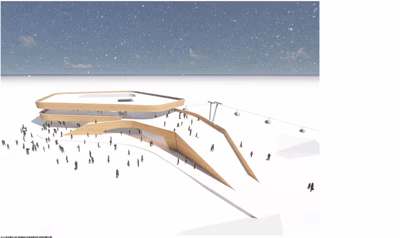 In der Bergstation entsteht ein Panorama-Restaurant. „Es wird gemunkelt, dass ich das nicht selbst betreiben wolle, das stimmt aber nicht“, widerspricht der Unternehmer den Gerüchten. Das Restaurant im Obergeschoß kann via Rolltreppe erreicht werden oder über die große Rampe südseitig, die nicht nur als Anfahrt per Ski oder Snowboard, sondern auch wie eine Arena zum Sitzen, Verweilen und Beobachten der Sprösslinge gedacht ist. Das Restaurant wird in Bereiche mit und ohne Bedienung aufgeteilt. Auch eine Kinderbetreuung und ein Skidepot finden dort Platz.