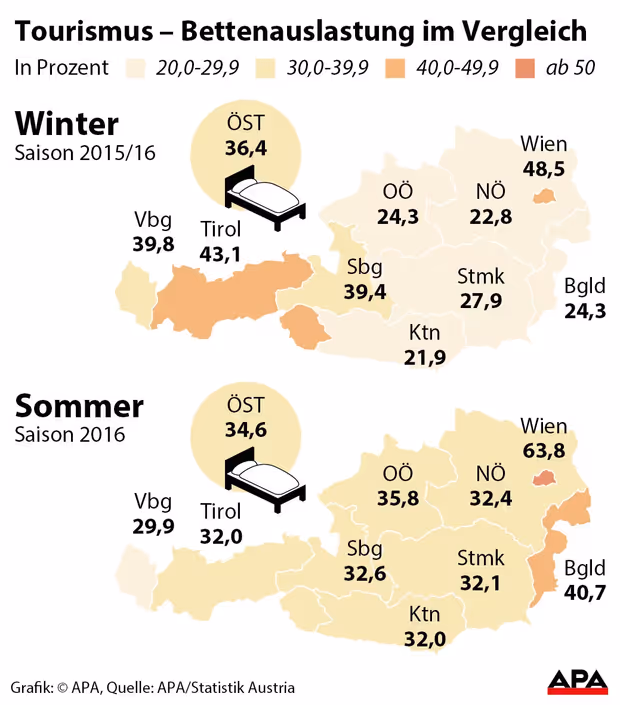 Dass die Bettenanzahl zuletzt trotzdem stieg, ist auf ein Wachstum einiger großer in der Top-Kategorie zurückzuführen, während „Kleine reihenweise zusperren“, erläuterte ÖHV-Sprecher Martin Stanits. In diesem untersten Segment liege das Betriebsergebnis (GOP) bei 5 Prozent der Betriebsleistung, im obersten bei 28 Prozent.