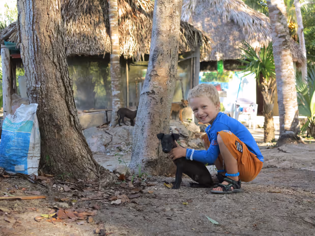 Der Kontakt mit Einheimischen wird stets gesucht. „Begegnungen mit Menschen und Kulturen sind uns wichtig. Es sind oft große Lernmomente, die neue Einsichten bringen. Wir reisen auch, um zu lernen“, erklärt Petra. Die Kinder fanden neue Spielgefährten. Und Ben war bei dem Reisestopp ganz vernarrt in die Baby-Straßenhunde.