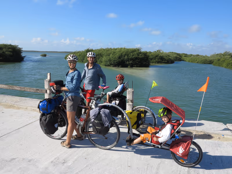Es ging weiter über Chetumal bis nach Altun Ha in Belize, wo die Radfamilie ihre erste Maya-Ruine erblickte. Nach einem traumhaften Aufenthalt in Belize fuhr das Quartett nach Guatemala.