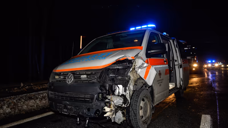 Dadurch waren aber kurzfristig alle beiden Fahrspuren blockiert und zwei Rettungsfahrzeuge, die gerade mit einem 13-jährigen Patienten in Richtung Klinik unterwegs waren, konnten nicht mehr anhalten. Sie prallten in eines der Taxis und in den Wagen des Italieners.