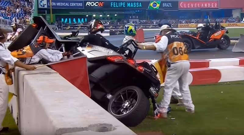 Der Deutsche sorgte beim „Race of Champions“ für einen spektakulären Abflug.