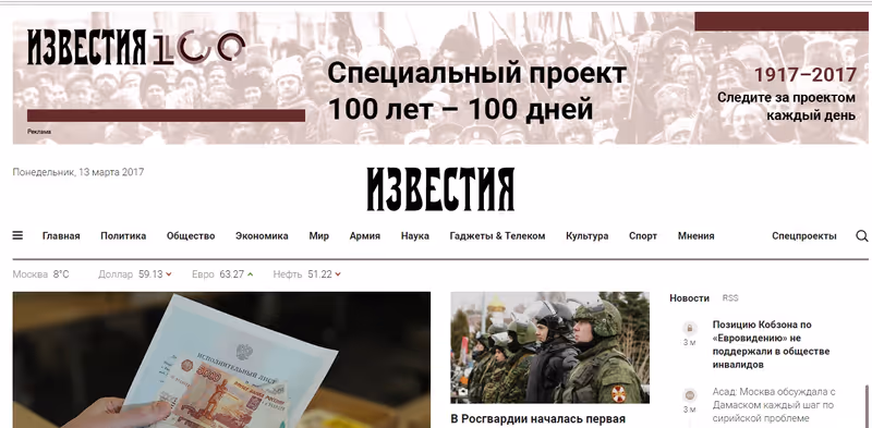 Die traditionsreiche russische Zeitung Iswestija erschien am 13. März 1917 zum ersten Mal, zwei Tage bevor Zar Nikolaus II. zurücktrat.