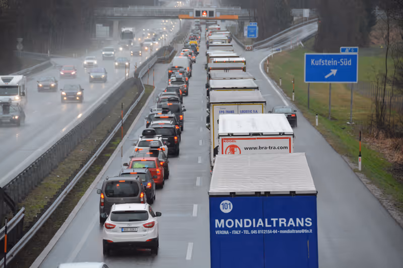 Bis zu 20 Kilometer Stau gab es bei der Ausreise aus Österreich in Kufstein/Kiefersfelden. Die Wartezeit betrug eine Stunde.