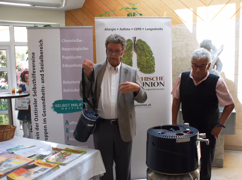 Lienz –Zigtausende Menschen in Österreich sind auf flüssigen Sauerstoff angewiesen, um richtig atmen zu können. Sei es nur über Nacht oder auch bis zu 16 Stunden am Tag. Grund kann eine Lungenfibrose, Asthma oder ein anderes Leiden sein. Diese Menschen haben zuhause einen großen Sauerstoffbehälter und atmen den lebenswichtigen Stoff über eine Nasenmaske ein. In Osttirol sind schätzungsweise 70 bis 100 Menschen betroffen.