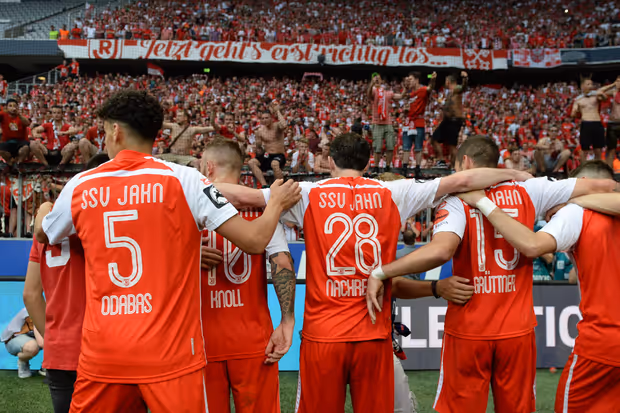 In Regensburg wird dagegen gefeiert. Erfolgscoach Heiko Herrlich hatte direkt nach dem Aufstieg von einem „sehr emotionalen Moment“ gesprochen. Der von den Fans als Vater des Erfolgs gefeierte Trainer, der seit anderthalb Jahren in Regensburg arbeitet, blieb auch in der Euphorie um ihn herum am Boden. „Ich empfinde Demut und Dankbarkeit, dass ich ein Teil sein darf von Jahn Regensburg“, sagte der 45-Jährige, der als Spieler vor exakt 20 Jahren mit Borussia Dortmund ebenfalls in München die Champions League gewinnen konnte.