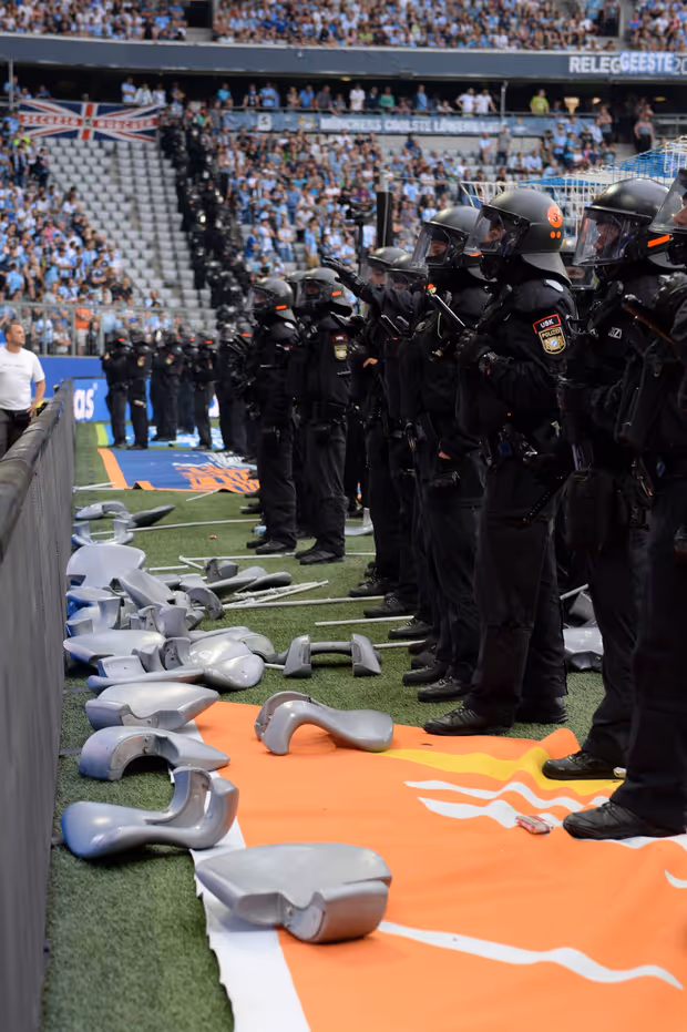 Ein Nachspiel werden für 1860 auch die Ausschreitungen von Fans während des Spiels haben. Mehrere Polizisten wurden dabei leicht verletzt. Die Beamten wurden von diversen Wurfgeschossen getroffen. Schiedsrichter Daniel Siebert musste die Partie in der 81. Minute für eine knappe Viertelstunde unterbrechen. Ein Abbruch konnte vermieden werden. 1860 München muss nach den erschreckenden Szenen mit einer harten Bestrafung durch den Deutschen Fußball-Bund (DFB) rechnen.