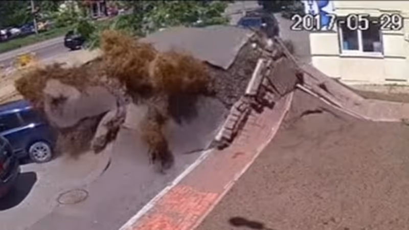 In der ukrainischen Hauptstadt Kiew kam es am Montag zu einem gewaltigen Rohrbruch. Der Druck des Wassers riss die Straße auf, mehrere Autos wurden zerstört. Verletzt wurde offenbar niemand.