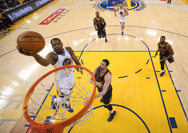 Im ersten Aufeinandertreffen waren die Warriors letztlich ungefährdet. Durant war mit 38 Punkten bester Scorer der Partie - 23 Punkte davon erzielte er in der ersten Halbzeit. Curry steuerte 28 Zähler und 10 Assists zum Heimsieg bei. Das mit Spannung erwartete erste Finalspiel hielt besonders im ersten Viertel, was man sich davon versprochen hatte. Die Cavaliers, bei denen Superstar LeBron James mit 28 Punkten der erfolgreichste Punktesammler war, hielten am Anfang noch gut mit.