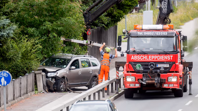 Die deutsche Lenkerin kam von der Straße ab. Der Wagen prallte gegen eine Leitschiene und einen Betonsockel. Die 38-Jährige wurde ins Krankenhaus eingeliefert.