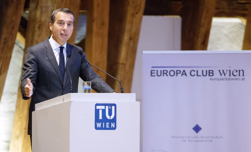 Kanzler-Rede in der TU Wien: Themen sind unter anderem die Weiterentwicklung des Wirtschaftsmodells und die Lastenteilung bei der Migration.