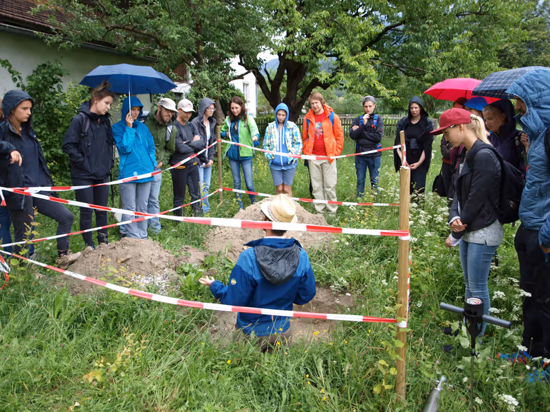 Dieser Bereich ist natürlich auch Teil eines Biologiestudiums. Gleich an zwei Tagen war der Forschungsbauernhof letzte Woche Ziel einer Exkursion von viertsemestrigen Bio-Studenten. Die propagierte Symbiose von Forschung und Saatgutvermehrung wird also tatsächlich realisiert. Für Michael Traugott vom Institut für Ökologie ist das Versuchsareal eine einmalige Chance, seine Studenten in der Praxis auszubilden. Interessiert nahmen die Bachelors in spe den Aufbau des Bodens ins Visier, um sich dann anschließend in fünf Stationen mit Saatgut zu beschäftigen.