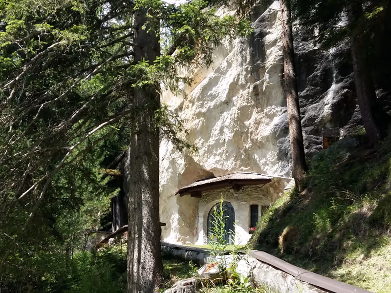 Ein weiteres Highlight ist die Felsenkapelle, die wir nach etwa 1,5 Stunden erreichen. Ein kurzer Kreuzweg führt hinauf zur Kapelle, die in den unteren Teil eines riesigen Felsblocks im Wald gebaut wurde. Ein magischer Platz, der zum Innehalten einlädt und einen besinnlich zur Ruhe kommen lässt.