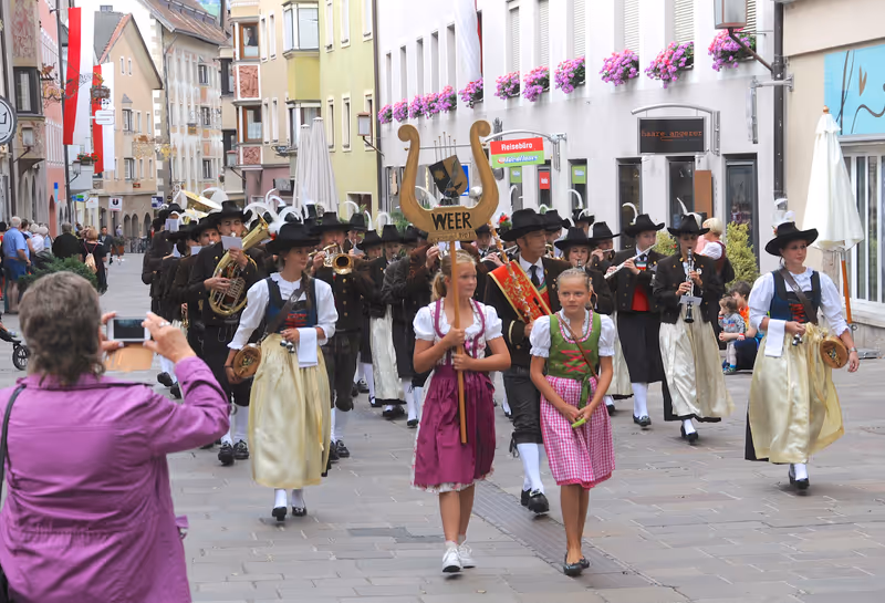 Die 14 Musikkapellen des Musikbundes Schwaz unter Obmann August Rappold feierten gemeinsam mit der Stadtmusikkapelle Schwaz deren 350. Bestandsjubiläum und das Bezirksmusikfest. Sogar Papst Franziskus hatte dazu Glückwünsche übermittelt. Ein Ehrengeschenk gab es für Ehrenobmann Stefan Kapeller von der BMK Jenbach für seine 70-jährige Treue. Der Schwazer BM Hans Lintner erhielt die goldene Ehrennadel des Landesverbandes. (rw, fh, hh, TT)