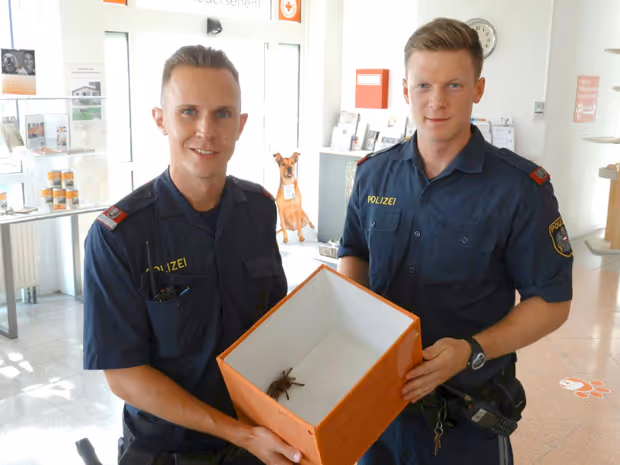 Als die Polizisten eintrafen, hatte es sich die Spinne bereits unter einem Auto gemütlich gemacht. Sie bargen das Tier mit Schutzhandschuhen, sicherten es in einer Box und brachten es ins Tierschutzhaus nach Vösendorf. „Ein herzliches Dankeschön an die mutigen Beamten. Ohne die tierliebe Hilfe von Einsatzkräften wie Polizei und Feuerwehr könnten wir unsere tägliche Arbeit nicht verrichten“, sagte WTV-Präsidentin Madeleine Petrovic.
