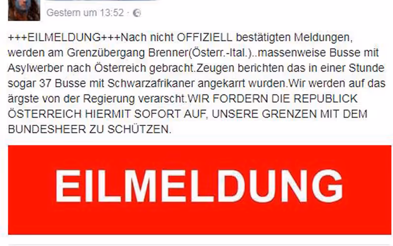 Innsbruck – Ein Facebook-Posting über angebliche Flüchtlingstransporte über den Brenner sorgt derzeit für gehörig Aufregung in den sozialen Medien. Laut dem mit Fehlern durchsetzten Eintrag vom Montag werden aktuell „nach nicht offiziell bestätigten Meldungen (...) massenweise Busse mit Asylwerber (sic!) nach Österreich gebracht“. Zeugen hätten demzufolge von 37 Bussen innerhalb einer Stunde berichtet, die den Grenzübergang von Italien nach Tirol passiert hätten. Das Posting wurde bis Dienstagnachmittag bereits mehr als 4000 Mal geteilt.