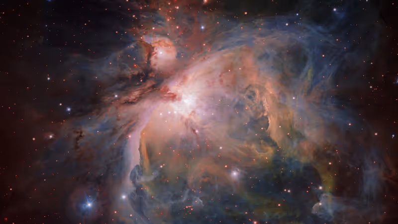 1350 Lichtjahre ist der Orionnebel von der Erde entfernt. Und jene Geburtstätte für Sterne, die der Erde am nächsten liegt. Das unglaublich detaillierte Bild wurde mit dem VLT Survey Telescope (VST) aufgenommen. Ein Team unter der Leitung des ESO-Astronomen Giacomo Beccari hat mit den Daten die Helligkeit und Farben aller Sterne im Orionnebel-Haufen genau bestimmt. So konnten sie auch ihre Masse und ihr Alter ermitteln.